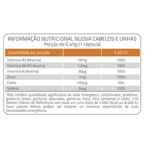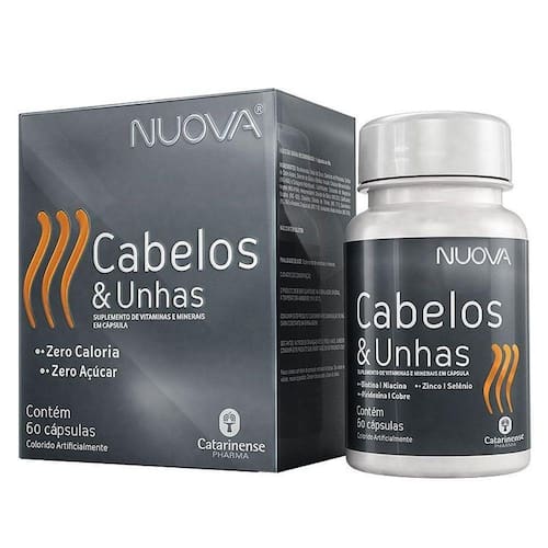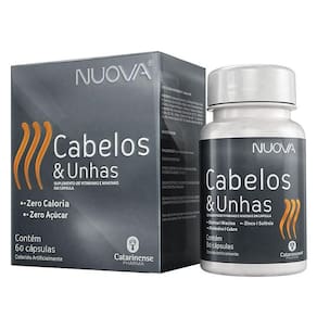 Nuova é um nutri cosmético que contribui para a manutenção do cabelo, da pele e das unhas, além de auxiliar no realce da pigmentação do fios.