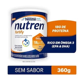 O nutren fortify é um complemento alimentar que contribui para o atingimento das metas nutricionais diárias. É um produto que tem ômega 3 de origem animal, rico em proteína e é sem sabor, pode facilmente ser incluído na rotina em qualquer momento do dia, em receitas doces ou salgadas.
