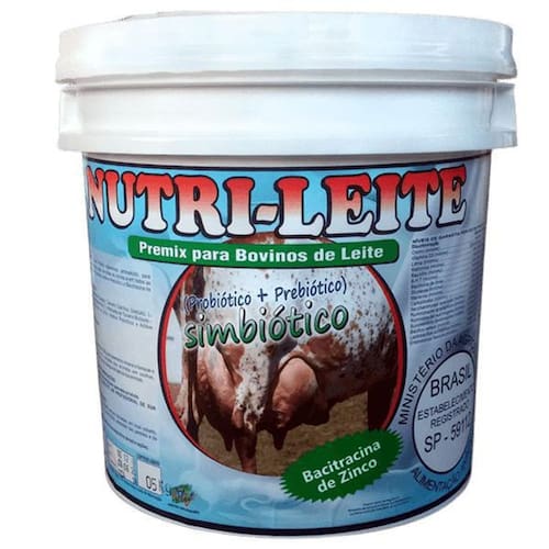 Nutrileite, alta produção, controla mastite e ccs - 10 kg Nutrileite simbiótico É um premix, vitamínico, aminoácido, para mistura, destinado aos bovinos de leite, de todas as idades e em todas as suas fases de criação, aditivo probiótico, aditivo prebiótico e de zinco. Espécie e categorias de animais a que se destina: Bovinos de leite: cria: vacas secas e em lactação e recria: bezerras, novilhas. Modo de usar: Misturar 250 gramas do produto em 25kg de suplemento mineral e fornecer o produto final após a mistura à vontade dos animais em cochos, preferencialmente cobertos e próximos da água de bebida dos animais. Níveis de por kg do produto: Cromo mínimo 94,0000 mg/kg Vitamina d3 mínimo 520.000,0000 ui/kg Lisina mínimo 1.560,0000 mg/kg Metionina mínimo 1.504,8000 mg/kg Baunilha mínimo 2.000,0000 mg/kg B.H.T mínimo 1.000,5000 mg/kg de zinco 3.000,0000 mg/kg Glucanos mínimo 2.600,0000 mg/kg Mananos mínimo 1.400,0000 mg/kg Carboidratos mínimo 4.000,0000 mg/kg Saccharomyces cerevisiae mínimo 1,5000x10e14 ufc/kg Ruminobacter amylophilum mínimo 6,0000x10e12 ufc/kg Ruminobacter succinogene mínimo 6,0000x10e12 ufc/kg Succinovibrio dextrinosolve mínimo 8,8000x10e12 ufc/kg Bacillus cereus mínimo 7,0000x10e12 ufc/kg Lactobacillus acidophilus mínimo 7,0000x10e12 ufc/kg Enterococus faecium mínimo 7,0000x10e12 ufc/kg Balde 10 kg
