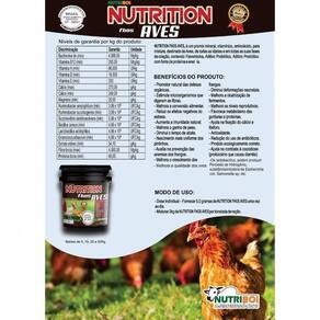 Modo de usar: dose individual 05 gr Nutrition Fhos Aves uma vez por dia ; Misturar 2kg de Nutrition Fhos Aves por tonelada de ração;