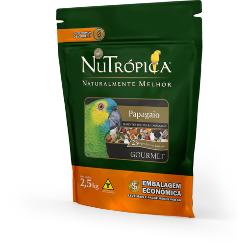 NuTrópica® Papagaio com Frutas é um alimento completo que atende a 100% das necessidades nutricionais de sua ave. Não recomendamos a adição de qualquer suplemento nutricional. As aves alimentam-se várias vezes ao dia, por isso NuTrópica® Papagaio com Frutas deve estar sempre a disposição de sua ave. Frutas, verduras e legumes frescos podem ser oferecidos separadamente, desde que não ultrapassem 20% do peso total do alimento diário. Água limpa e fresca deve estar sempre disponível. O veterinário deve ser visitado regularmente.