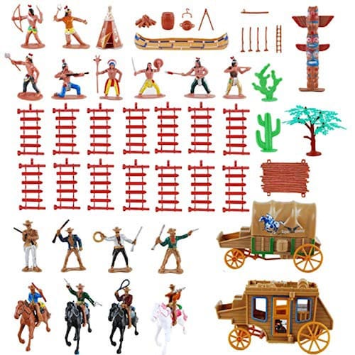 NWFashion 55PCS/Set West Cowboys American Indians Plastic Figure Toys Playset Acessórios