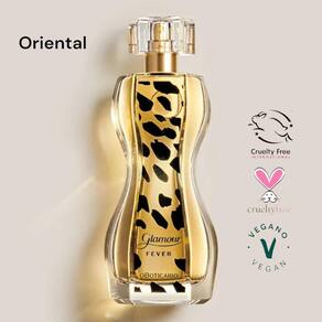 A fragrância Oriental Amadeirado Especiado do Glamour Fever é envolvente e irresistível. Seus detalhes e curvas nas embalagens ressaltam a feminilidade e destacam o poder e a elegância da mulher. O toque especial fica por conta do bronze, do cinto animal print e da pintura degradê no frasco, que garantem a sofisticação que todas nós amamos.
