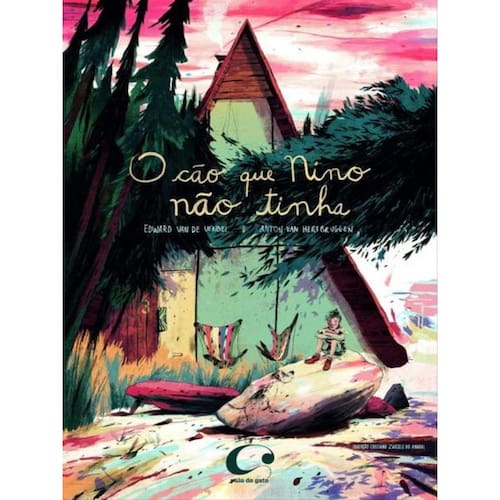Nino é filho único e tem um cãozinho que é só dele, de ninguém mais. Um cachorro que está com ele em todas as horas do dia e é capaz de encontrar até os sentimentos escondidos lá no fundo do coração de Nino. Mas, os melhores amigos às vezes precisam ir embora. E o cão que Nino não tinha um dia foi... Este livro trata, de forma sensível e criativa, os dilemas da solidão na infância, mostrando a importância do jogo simbólico e do imaginário para amenizar as faltas, as perdas e os sentimentos com os quais as crianças se deparam e não são ainda capazes de nomear. O Pulo do gato: O título instigante provoca a curiosidade do leitor, convidando-o a explorar as ilustrações até descobrir o cão imaginário, representado nas cenas em preto e branco e transparências, bem distinto do modo com que o filhote de carne, osso e pelos que Nino ganha de presente é apresentado pelo ilustrador. Os cenários em que a narrativa acontece são sempre marcados pela presença da natureza, até mesmo as cenas internas remetem à vida natural e o consequente modo de vida contemplativo que ela determina: os bosques próximos às habitações, as árvores coníferas, a casa com paredes de vidro expostos, a cabaninha de tecido em que Nino brinca, os animais silvestres, o lago etc.