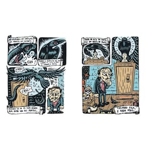 O célebre poema O Corvo (The Raven), do escritor norte-americano Edgar Allan Poe (1809-1849) – um dos precursores da literatura de ficção científica e fantástica em âmbito mundial –, ganhou nova versão em HQ em 2009, ano em que se completou 200 anos de nascimento de seu autor. Publicado pela primeira vez em 1945, já na maturidade de Poe e próximo de sua morte precoce, aos 40 anos de idade, o poema, admirado pela linguagem musical e pelo conteúdo metafísico, recebeu traduções de grandes expoentes da literatura, como Baudelaire, Mallarmè, Fernando Pessoa e Machado de Assis. Nesta versão da coleção Clássicos em quadrinhos, O Corvo renasce das mãos do quadrinista Luciano Irrthum, que expressa sua reverência pela obra imprimindo-lhe o lirismo, a força e a visceralidade de seu traço.