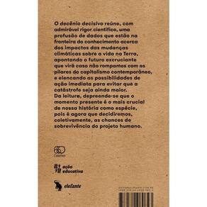 O decênio decisivo reúne, com grande rigor científico, uma quantidade imensa de dados que estão na fronteira do conhecimento acerca dos impactos das mudanças climáticas sobre a vida na Terra, apontando o futuro excruciante que virá caso não rompamos com os pilares do capitalismo contemporâneo, e elencando as possibilidades de ação imediata para evitar que a catástrofe seja ainda maior. Da leitura, depreende-se que o momento presente é o mais crucial de nossa história como espécie, pois é agora que decidiremos, coletivamente, as chances de sobrevivência do projeto humano. *** As formas mentais herdadas da civilização ocidental moderna e contemporânea se esgotaram e não podem mais pretender ditar os critérios de avaliação do projeto humano. Assim, o repertório intelectual e espiritual imenso dessa tradição deve-se abrir agora, no caso sobretudo da América Latina, para o patrimônio não menos imenso dos saberes, das sensibilidades e dos ensinamentos indígenas e de matriz africana. Em todo caso, mudar só será possível se a compreensão intelectual se aliar ao senso de universalidade da condição humana, à paz, à empatia com o “outro” (inclusive com o não humano) e a uma ação política coletiva radical. Concretamente, tudo deve começar pelo abandono dos combustíveis fósseis, que também engendraram o sistema tóxico-industrial globalizado de produção de commodities agropecuárias e a poluição extrema de nossos dias. Esse abandono comporta riscos, privações, sofrimentos consideráveis e inevitáveis. Mas ele terá que ocorrer em marcha forçada e sem mais dilações, se as sociedades pretendem sobreviver. A sobrevivência é a utopia do século XXI. — Luiz Marques, no Prefácio à segunda edição