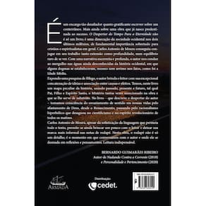 É um encargo tão desafiador quanto gratificante escrever sobre um conterrâneo. Mais ainda sobre uma obra que já nasce predestinada ao sucesso. O Despertar do Tempo Para a Eternidade não é só um livro; é uma dissecação da sociedade ocidental nos dois últimos milênios, de fundamental importância sobretudo para cristãos e espiritualistas em geral. Carlos Antônio de Moura conseguiu conjugar em seu trabalho tanto extensão como profundidade, num equilíbrio raro de se ver. Com uma narrativa escorreita e profunda, o autor nos conduz ao mergulho nas águas ainda desconhecidas da história ocidental, em que alguns dogmas se estabeleceram, mesmo sem arrimo nos fatos, como foi a Idade Média. Expondo uma pesquisa de fôlego, o autor brinda o leitor com sua excepcional concatenação de ideias e associação entre causas e efeitos. Temos, neste livro um mapa peculiar da história, unindo passado, presente e futuro, tal qual Pai, Filho e Espírito Santo, o Mistério tantas vezes mencionado na obra e que se lhe serve de substrato. No livro que descreve o despertar do autor tomamos consciência do esvaziamento de sentido em nossas vidas pelo afastamento de Deus, desde o Renascimento, passando pelo racionalismo hiperbólico que desaguou no cientificismo e no espírito revolucionário de todos os matizes. Carlos Antônio de Moura, apesar da sofisticação da linguagem que permeia todo o texto, permite-se ainda brincar um pouco com o leitor e deixar sua marca mais informal nas notas de rodapé. Nesta obra, o rodapé não é só um detalhe; é o momento em que conversamos com o autor e onde ele se desnuda em reflexões e pensamentos. Leitura indispensável. Bernardo Guimarães Ribeiro Autor de Nadando Contra a Corrente (2018) e Personalidade e Pertencimento (2020)
