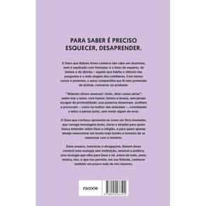 PARA SABER É PRECISO ESQUECER, DESAPRENDER. O Deus que Rubem Alves conhece não cabe em doutrinas, nem é explicado com fórmulas: é o Deus do espanto, da beleza e da dúvida – aquele que habita o silêncio das perguntas e o mais singelo dos cotidianos. Com textos curtos e potentes, o autor compartilha sua fé sem pretensão de ensinar, converter ou arrebatar. “Ridendo dicere severum: rindo, dizer coisas sérias”: assim traz o autor, com humor, lirismo e leveza, sem jamais escapar da profundidade; suas palavras desarmam, acolhem e provocam – como na melhor das amizades –, convidando o leitor a pensar junto, sem medo algum de errar. O Deus que conheço apresenta-se como um livro revelador, que carrega mensagens leves, claras e simples para quem busca entender sobre Deus e religião, e para quem apenas deseja reencontrar um modo mais bonito e honesto de se relacionar com o mistério. Entre ensaios, memórias e divagações, Rubem Alves constrói uma teologia sem instituição, sensível e poética; uma teologia que olha para Deus e vê, acima de tudo, amor, música, riso, e que nos permite, em sua finitude, conhecer também um pouco mais de nós mesmos.