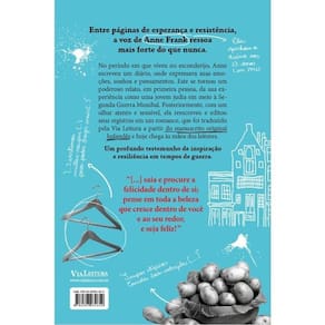 Entre páginas de esperança e resistência, a voz de Anne Frank ressoa mais forte do que nunca. No período em que viveu no esconderijo, Anne escreveu um diário, onde expressava suas emoções, sonhos e pensamentos. Este se tornou um poderoso relato, em primeira pessoa, da sua experiência como uma jovem judia em meio à Segunda Guerra Mundial. Posteriormente, com um olhar atento e sensível, ela reescreveu e editou seus registros em um romance, que foi traduzido pela Via Leitura a partir do manuscrito autêntico holandês e hoje chega às mãos dos leitores. Um profundo testemunho de inspiração e resiliência em tempos de guerra. Edição Especial Capa Dura com fotografias e informações extras para melhor compreensão do contexto histórico em que o Diário foi escrito. Marca: Não Informado