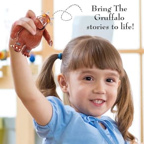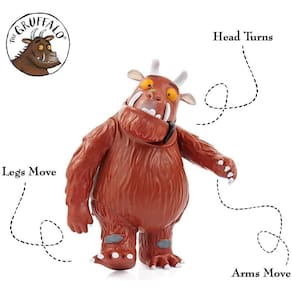 "Um rude? O que é um gruffalo?" "Um gruffalo! Por que, você não sabia? Ele tem presas terríveis, garras terríveis e dentes terríveis em suas terríveis mandíbulas." Vá em uma aventura com o Gruffalo e deixe seu filho brincar de fazer crer no maravilhoso mundo Gruffalo criado por Julia Donaldson. Com a ajuda de uma verdadeira figura de ação Gruffalo, seu filho pode usar sua imaginação para reencenar as histórias de Gruffalo, até mesmo criando poses que correspondam ao livro através do uso de sua cabeça e membros articulados.