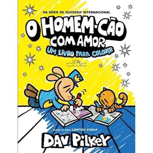 Os melhores trechos de Homem-Cão, a emocionante e divertida série em quadrinhos de Dav Pilkey, para serem coloridos como as crianças quiserem! Chegou a hora de os leitores de Homem-Cão também se tornarem autores da série! Neste compilado de mais de cem cenas icônicas dos primeiros dez volumes da coleção, leitores de todas as idades vão se juntar a Dav Pilkey e colocar a mão na massa para colorir com liberdade e criatividade alguns personagens queridos, como Pepê, Pepezinho, chefe, Formigão e muitos outros. Ah, e o nosso grande AUmigo: o Homem-Cão! Esse é o livro de colorir oficial da série Homem-Cão, e foi organizado com cuidado para garantir corações quentinhos e risadas estrambólicas — além de muita arte e diversão, claro! “Espero que você curta colorir este livro e que todas as suas histórias sejam histórias sobre amor.” — Dav Pilkey Indicado para leitores a partir de 4 anos.