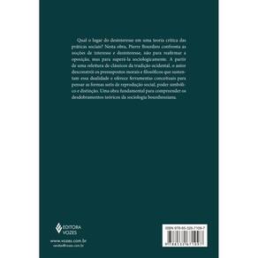 Qual o lugar do desinteresse em uma teoria crítica das práticas sociais? Nesta obra, Pierre Bourdieu confronta as noções de interesse e desinteresse, não para reafirmar a oposição, mas para superá-la sociologicamente. A partir de uma releitura de clássicos da tradição ocidental, o autor desconstrói os pressupostos morais e filosóficos que sustentam essa dualidade e oferece ferramentas conceituais para pensar as formas sutis de reprodução social, poder simbólico e distinção. Uma obra fundamental para compreender os desdobramentos teóricos da sociologia bourdieusiana.