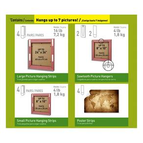 - Inclui – 4 pares de tiras grandes para pendurar fotos, 4 pares de tiras pequenas para pendurar fotos, 4 tiras de pôster, 2 ganchos de fotos com dentes de serra, 2 tiras grandes; Pendura até 7 fotos e a capa recarregável é ótima para armazenamento e é fácil de recarregar