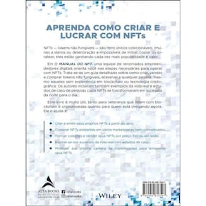 APRENDA COMO CRIAR E LUCRAR COM NFTs NFTs — tokens não fungíveis — são itens únicos colecionáveis. Imunes a danos ou deterioração e impossíveis de imitar, copiar ou piratear, eles estão ganhando cada vez mais popularidade e valor. Em O MANUAL DO NFT, uma equipe de renomados empreendedores digitais orienta você nas etapas necessárias para operar com NFTs. Trata-se de um guia detalhado sobre como criar, vender e comprar tokens não fungíveis, acessível a qualquer pessoa, mesmo aqueles sem experiência em blockchain ou tecnologia criptográfica. Os autores incluíram também exemplos da vida real e estudos de caso de pessoas cujos NFTs se transformaram em sucessos da noite para o dia. Este livro é muito útil, tanto para veteranos que lidam com blockchain e criptomoedas quanto para quem está chegando agora. Ele o ajuda a: Criar e emitir seus próprios NFTs a partir do zero. Comprar NFTs existentes em vários marketplaces bem-conceituados. Formar coleções e vender seus NFTs por preço fixo ou em leilão. Inspirar-se nos sucessos da vida real com estudos de caso. Proteger sua própria carteira de criptomoedas para armazenar seus NFTs. Ean: 9788550818597