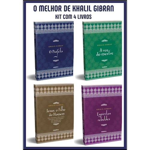 Kit com as principais obras de Khalil Gibran: O profeta, Espíritos Rebeldes, A voz do mestre e Jesus, o Filho do Homem * O PROFETA O Profeta é uma obra que encanta por sua beleza, simplicidade e, ao mesmo tempo, pela sua profundidade. Publicada em mais de quarenta idiomas, vem conquistando a admiração do público ao redor do mundo e inspirando milhões de leitores.É composta por vinte e seis ensaios filosóficos. No livro, o profeta Almustafa está prestes a deixar a cidade fictícia de Orphalese, onde viveu por doze anos, para retornar à sua terra natal e, a pedido do povo, que sofre ao vê-lo partir, discorre sobre temas universais, como religião, morte, amizade, casamento, tempo e trabalho. * ESPÍRITOS REBELDES Espíritos rebeldes, também já publicado como Almas rebeldes, é uma reunião de contos que foram compilados em 1908, quinze anos antes da publicação de O profeta. A primeira dessas histórias, chamada “Wardé Al-Hani”, é sobre uma moça que deixa o marido e a riqueza deste para viver uma vida humilde com o homem que ama. “O grito das tumbas”, outra história, emite a mensagem atemporal da opressão dos fracos pelos fortes. A história seguinte, “O leito nupcial”, é sobre uma festa de casamento que começou alegre e terminou muito triste. Em “As ninfas do vale”, o jovem pastor louco Yuhanna era o porta-voz de Gibran. Aqui, em Khalil, o Herege, seu porta-voz é Khalil, que tem um caráter mais ousado e luta para ver o correto triunfar sobre o errado. * A VOZ DO MESTRE Um encontro entre poesia, filosofia e espiritualidade, A voz do mestre é uma das obras mais poderosas de Khalil Gibran. Publicada postumamente, trata com simplicidade, embora de forma profunda, de temas como o amor, o casamento e o divino. Em vinte contos curtos e belos, o mestre e seu aprendiz compartilham com o leitor a sabedoria das tradições orientais e ocidentais, cultivadas por Gibran em toda a sua obra. * JESUS, O FILHO DO HOMEM Uma das obras mais amadas de Gibran, este é um impressionante retrato ficcional de Cristo pelos olhos de seus contemporâneos. O autor dá voz a diversas figuras, de Maria Madalena a Pôncio Pilatos. Esta fascinante coletânea combina a autoridade histórica com a suprema eloquência que seus admiradores tanto apreciam. Membros da família, amigos, discípulos, oponentes religiosos e políticos, pensadores e ignorantes, inimigos e outros dão testemunhos sobre a personalidade, as atitudes e as palavras do Mestre. Aqui, o autor, como um pintor que desvela um quadro ao público, evoca o poder fascinante da presença de Cristo sobre seus companheiros e convida o leitor a refletir sobre sua própria visão do Filho do Homem.