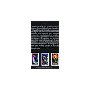 O Oráculo da Magia dos Dragões é um sistema divinatório poderoso, místico e encantador. Composto por 70 cartas magnificamente ilustradas com imagens de dragões, este oráculo é uma ferramenta valiosa para aqueles que buscam orientação, entendimento e insights em sua vida, permitindo lhes acessar os poderes e a sabedoria dos dragões para obter uma visão mais clara de seus caminhos pessoais. Cada carta contém uma mensagem única e significativa, que pode ser interpretada das mais diversas maneiras, oferecendo direcionamento, inspiração e poder em áreas como amor, carreira, finanças, relacionamentos e espiritualidade. Com este oráculo, você pode desbloquear o poder dos dragões e trazer clareza para o seu futuro. Marca: Não Informado