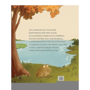Olá, garotada, eu vim avisar: Existe beleza por todo lugar. Se alguém reclamar da sua aparência Diz esta história que, com paciência, A gente encontra a tal da autoestima E caminha olhando pra frente, pra cima. E toda a tristeza perde o poder. Assim, é bem mais gostoso viver.
