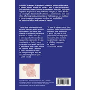 Romance de estreia de Aline Bei, O peso do pássaro morto narra a história de uma mulher dos 8 aos 52 anos — uma vida marcada por renúncias, perdas, traumas e sofrimentos. Esta nova edição inclui posfácio inédito de Marcelino Freire. A protagonista deste livro não tem nome. Aos oito anos, ela tem um corpo que brinca, sonha e ama. Tem pais que se preocupam com ela. Tem uma melhor amiga com quem se diverte durante os intervalos da escola. Tem como vizinhos uma senhora querida que cozinha o melhor pudim do mundo e um enigmático benzedeiro de óculos escuros que cura tudo em um passe de mágica. Tem, sobretudo, um futuro repleto de possibilidades pela frente. Porém, uma série de acontecimentos lhe ensina muito cedo sua falta de controle diante da imprevisibilidade da morte. Brutais e implacáveis, essas perdas logo passam a fazer parte de quem ela é. Anos mais tarde, com as cicatrizes dos traumas de infância inscritas no corpo, a protagonista é vítima de uma violência que mais uma vez a mudará para sempre. Em meio a muitas dores, mas também a pequenos momentos de delicadeza, essa mulher amadurece tentando entender seu lugar em um mundo — que parece relembrá-la, em igual medida, de sua fragilidade e de sua força. Publicado pela primeira vez em 2017, O peso do pássaro morto se tornou um dos maiores fenômenos da literatura contemporânea, e se destaca por seu estilo híbrido entre a prosa e a poesia. Nessa estreia arrebatadora, Aline Bei faz uma investigação universal da existência humana, de nossa busca por afeto e de como os nossos sofrimentos — nem sempre nomeáveis — nos tornam quem somos. "Nesta obra, todos aqueles que, em suas solidões, temem a morte, encontrarão o que há de mais indelével na existência: perceber-se humano ao sentir o peso que o outro suporta. Uma escrita que nos permite experienciar diversas maneiras de se findar — como um ensaio, como a pele que testa a quentura da água — pela escolha de continuar lendo, e sentindo, a beleza de chorar as dores de uma personagem. Aline Bei, aqui, nos entrega seu legado." — Jarid Arraes "O peso do pássaro morto é um marco da ficção contemporânea brasileira. Aline Bei constrói a leveza e o peso de viver por meio de uma linguagem exuberante. Uma narrativa magistral sobre a perda, a solidão e a passagem do tempo.” — Jeferson Tenório
