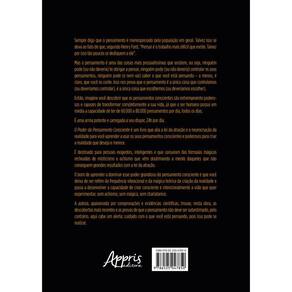 Sempre digo que o pensamento é menosprezado pela população em geral. Talvez isso se deva ao fato de que, segundo Henry Ford, “Pensar é o trabalho mais difícil que existe. Talvez por isso tão poucos se dediquem a ele”. Mas o pensamento é uma das coisas mais pessoalíssimas que existem, ou seja, ninguém pode (ou não deveria) te obrigar a pensar, ninguém pode (ou não deveria) controlar os seus pensamentos, ninguém pode (e nem vai) saber o que você está pensando – a menos, é claro, que você os conte. Isso nos prova que o pensamento é a única coisa que controlamos (ou deveríamos controlar), é a única coisa que escolhemos (ou deveríamos escolher). Então, imagine você descobrir que os pensamentos conscientes são extremamente poderosos e capazes de transformar completamente a sua vida, já que o ser humano possui em média a capacidade de ter de 60.000 a 4B8r3B4p7yhRXuBWLqsQ546WR43cqQwrbXMDFnBi6vSJBeif8tPW85a7r7DM961Jvk4hdryZoByEp8GC8HzsqJpRN4FxGM9 dia. O Poder do Pensamento Consciente é um livro que alia a lei da atração e a neurocriação da realidade para você aprender a usar os seus pensamentos conscientes e poderosos para criar a realidade que deseja e merece. É destinado para pessoas exigentes, inteligentes e que cansaram das fórmulas mágicas recheadas de misticismo e achismo que vêm doutrinando a mente daqueles que não conseguem grandes resultados com a lei da atração. O bom de aprender a dominar esse poder grandioso do pensamento consciente é que você deixa de ser refém da frequência vibracional e da mágica teórica da criação da realidade e passa a desenvolver a capacidade de criar consciente e intencionalmente a vida que quer experimentar, sem achismo, sem mágica, sem charlatanice. A autora, apaixonada por comprovações e evidências cientí?cas, trouxe, nesta obra, as descobertas mais recentes e as provas de que o pensamento não deve ser subestimado, pelo contrário, aqui cabe um alerta: cuidado com o que você está pensando, pois isso pode se realizar. Ean: 9786525047850