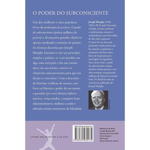 O poder do subconsciente lhe ensinará técnicas para desenvolver todo o potencial da sua mente, superando adversidades, alcançando seus objetivos e mudando situações aparentemente irreversíveis. O poder do subconsciente ajudou milhões de pessoas a alcançarem grandes objetivos apenas mudando a maneira de pensar. As técnicas revolucionárias descritas pelo Dr. Murphy baseiam-se em um princípio simples e prático: se você acredita em algo sem restrições e faz um retrato disso em sua mente, remove os obstáculos subconscientes para que seu desejo se concretize. Assim, qualquer um pode transformar em realidade aquilo em que acredita. Com a descrição de histórias verídicas de sucesso, O poder do subconsciente é um guia para libertar o poder da mente que revela os segredos para melhorar um casamento, vencer medos, eliminar hábitos nocivos, curar pequenos problemas de saúde e obter promoções, prestígio, dinheiro e felicidade pessoal. Este livro é um clássico que já ultrapassou a marca de 1 milhão de exemplares vendidos no Brasil, mudando muitas vidas.
