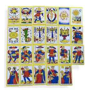 O jogo de Tarot é composto por Arcanos Menores e Maiores e é muito conhecido e praticado em todo o mundo. tarot é um baralho esotérico ideal pra fazer leituras sobre a vida das pessoas, previsões de futuro e quais caminhos têm chances de dar certo. Boa qualidade de impressão com resolução e ilustrações bem definidas. Material permite bom deslize das cartas ao jogar, possibilitando melhor performance no jogo.