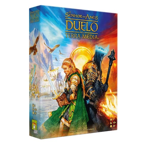 Baseado em 7 Wonders Duel, o famoso jogo para dois jogadores, O Senhor dos Anéis: Duelo pela Terra Média é um verdadeiro encontro de titãs. Situado em um dos universos de fantasia mais icônicos, combina um jogo de tabuleiro lendário com uma equipe criativa de peso, incluindo Antoine Bauza e Bruno Cathala, com ilustrações de Vincent Dutrait.