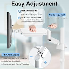 - Design ergonômico - Trabalhe confortavelmente e melhore sua experiência de visualização com o suporte de monitor de mola a gás único ErgoFocus. Nosso avançado sistema de mola a gás fornece 12,2 polegadas de ajuste suave de altura, e a altura do braço do monitor também pode ser ajustada ao longo do poste de 14,3". Configure uma altura ergonômica para aliviar o pescoço e os ombros