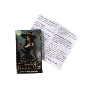 O Tarô Dama da Noite 36 Cartas + Presente Adquira este baralho maravilhoso e ganhe um lindo presente. Descubra o poder do O Tarô Dama da Noite, um conjunto de 36 cartas que trazem a sabedoria ancestral do tarot para suas mãos. Com um design elegante e envolvente, cada carta é uma janela para o autoconhecimento e a reflexão, ideal para iniciantes e praticantes experientes. O formato físico das cartas, com dimensões de 120 mm de comprimento e 70 mm de largura, proporciona uma experiência tátil única. Acompanha um manual explicativo que orienta o usuário em cada leitura, tornando o processo acessível e intuitivo. A marca Bialluz é reconhecida pela qualidade de seus produtos, garantindo que você tenha uma ferramenta confiável para suas consultas. Embora não sejam à prova d'água, as cartas são duráveis e projetadas para resistir ao uso frequente. Especificações técnicas: Contém 36 cartas plastificadas e acompanha Manual de Orientação com 16 páginas e impresso com versão em português dentro da Caixa. Este Manual também está disponível em QR Code na Embalagem de Acesso ágil e instantâneo, é só apontar o aplicativo da câmera integrada do seu Smartphone ou Tablet Android ou IOS. Enviamos o seu baralho em até 24 horas após a confirmação de pagamento Todas as cartas possuem identificação escritas em português. Dimensões da caixa 70 mm de largura x 35 mm de altura x 125 mm de comprimento Peso aproximado: 110 g Design impressionante, bem tradicionais em tons coloridos. Excelente qualidade de impressão, alta resolução e ilustrações bem definidas. Excelente deslize, portanto, são mais difíceis de amassar. Material: papel resistente Dimensões aproximadas das cartas: Comprimento: 12 cm Largura: 6,5 cm Espessura 0,5mm Tamanho certo para as suas mãos Peso: 110 gramas Caso tenha alguma dúvida nos mande mensagem que respondemos rapidinho para te ajudar da melhor forma possível Marca: Não Informado