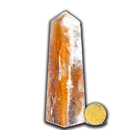 Obelisco Raio Laranja natural de garimpo. O obelisco de Raio Laranja pode ser utilizado como um objeto decorativo elegante e sofisticado.