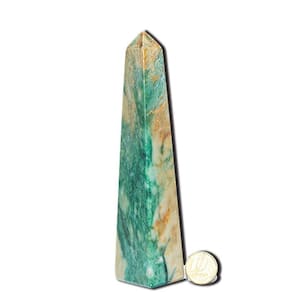 Obelisco Jadeita Verde natural de garimpo. O obelisco de Jadeita Verde pode ser utilizado como um objeto decorativo elegante e sofisticado.