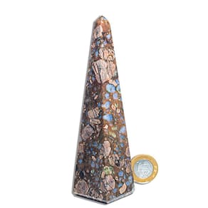 Obelisco Riolita Rosa Pedra Natural de Garimpo Lapidação de Obelisco NOME DAS PEDRAS: Riolita Rosa Natural COR DAS PEDRAS: Marrom com Rajas Rosa e Azuis (Foto Ilustrativa) CORTE DAS PEDRAS: Obelisco (Torre Piramidal) CLARIDADE DAS PEDRAS: Denso Brilhoso MEDIDA DAS PEDRAS: 15 a 16 centimetros aproximado PESO TOTAL DA PEDRA: 280 Gramas aproximado ORIGEM: Lapidação, Curvelo, MG NOTA: Por ser pedra natural podem apresentar variações em suas tonalidades e grafismos. Há também a possibilidade de ocorrerem pequenas inclusões que irão se assemelhar a fissuras, mas que são normais de minerais autentico de garimpo. Hidratação oleo mineral. São úteis na canalização de energia curativa e são ótimos acumuladores de luz, que é projetada pelo Obelisco Os Obeliscos promovem a concentração, intensificam e dirigem a energia entre chacras, bastandose apontar seu ápice para os mesmos, promovendo dessa forma, sua purificação ou renovação energética Também são ótimos para movimentação energética em ambientes Marca: CristaisdeCurvelo