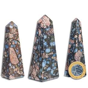 Obelisco Riolita Rosa Pedra Natural de Garimpo Lapidação de Obelisco NOME DAS PEDRAS: Riolita Rosa Natural COR DAS PEDRAS: Marrom com Rajas Rosa e Azuis (Foto Ilustrativa) CORTE DAS PEDRAS: Obelisco (Torre Piramidal) CLARIDADE DAS PEDRAS: Denso Brilhoso MEDIDA DAS PEDRAS: 9 a 10 centimetros aproximado PESO TOTAL DA PEDRA: 112 Gramas aproximado ORIGEM: Lapidação, Curvelo, MG NOTA: Por ser pedra natural podem apresentar variações em suas tonalidades e grafismos. Há também a possibilidade de ocorrerem pequenas inclusões que irão se assemelhar a fissuras, mas que são normais de minerais autentico de garimpo. Hidratação oleo mineral. São úteis na canalização de energia curativa e são ótimos acumuladores de luz, que é projetada pelo Obelisco Os Obeliscos promovem a concentração, intensificam e dirigem a energia entre chacras, bastandose apontar seu ápice para os mesmos, promovendo dessa forma, sua purificação ou renovação energética Também são ótimos para movimentação energética em ambientes Marca: CristaisdeCurvelo