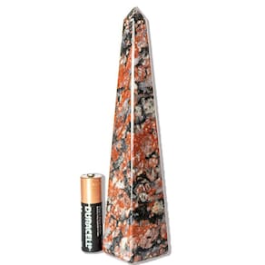 Obelisco Unakita Brasileira natural de garimpo. O obelisco de Unakita pode ser utilizado como um objeto decorativo elegante e sofisticado. NOME DA PEDRA: Unakita Brasileira COR DA PEDRA: Vermelho com Rajas Pretas CORTE DA PEDRA: Obelisco (Torre de Piramide) CLARIDADE DA PEDRA: Sem transparencia MEDIDA DA PEDRA: 15 a 16 Centimetros Aproximadamente PESO DO OBELISCO: 195 Gramas Aproximadamente ORIGEM: Brasil NOTA: Por ser pedra natural pode apresentar variações em suas tonalidades e grafismos. Há também a possibilidade de ocorrerem pequenas inclusões que irão se assemelhar a fissuras, mas que são normais de minerais autentico de garimpo. Marca: Cristaisdecurvelo