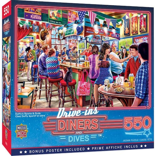 Masterpieces Quebra-cabeça de 550 peças para adultos e família - Duffy's Sports & Suds - 45,7 cm x 61 cm