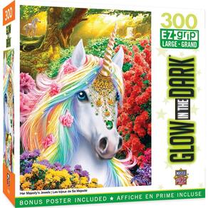 MasterPieces - Quebra-cabeça de 300 peças com grandes formas EZ Grip, brilha no escuro, joias de Sua Majestade, diversão para adultos, idosos, família, crianças, 45,7 x 61 cm - Brilha no escuro: Depois de terminar o quebra-cabeça, apague as luzes e fique hipnotizado com os excelentes efeitos de brilho; é um presente encantador para você ou um entusiasta de quebra-cabeças; Masterpieces é uma empresa americana de quebra-cabeças e jogos - PEÇAS EXTRA GRANDES: Nossos quebra-cabeças EZ Grip apresentam peças grandes e mais grossas para facilitar a coleta e manipulação; cuidadosamente trabalhados com crianças pequenas e idosos em mente; projetados para serem divertidos e mentalmente estimulantes; ajudam no relaxamento; aumentam as habilidades de resolução de problemas; ótima atividade social com a família e amigos - Formas exclusivas: o quebra-cabeça possui 300 peças em uma variedade de cortes, garantindo um desafio; peças entrelaçadas se encaixam para um ajuste seguro; acabamento fosco antirreflexo reduz o cansaço visual; um pôster vibrante e colorido está incluído para referência enquanto você o monta - Responsável pelo meio ambiente: este quebra-cabeça é feito de material 100% reciclado e tintas à base de soja não tóxicas - Entretenimento para todos: a coleção MasterPieces oferece a maneira perfeita de manter a diversão noturna do jogo; selecione entre quebra-cabeças para adultos, idosos e crianças; baralhos exclusivos de baralho, jogos de tabuleiro, dominó, kits de artesanato e muito mais