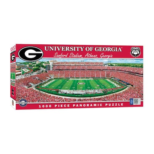 MasterPieces - Quebra-cabeça de 1000 peças, NCAA Georgia Bulldogs, vista panorâmica do estádio de futebol, divertido para adultos e família, 33 cm x 39 cm - Licenciado oficialmente: nossos quebra-cabeças panorâmicos NCAA são oficialmente licenciados pelas ligas em que seus times favoritos jogam; divertidos para dias de jogos e não autorização; Masterpieces é uma empresa americana de quebra-cabeças e jogos - FORMAS ÚNICAS: O quebra-cabeça possui 1.000 peças em uma variedade de cortes, garantindo um desafio; peças grossas interligadas seguram firmemente; acabamento fosco antirreflexo reduz o cansaço visual - Responsável pelo meio ambiente: nossos quebra-cabeças são feitos de material 100% reciclado e tintas à base de soja não tóxicas - Desafio: Nossos quebra-cabeças são projetados para serem divertidos e mentalmente estimulantes; ajudam no relaxamento; aumentam as habilidades de resolução de problemas; ótima atividade social com a família e amigos - Entretenimento para todos: a coleção MasterPieces oferece a maneira perfeita de manter a diversão noturna do jogo; selecione entre quebra-cabeças para adultos, idosos e crianças; baralhos exclusivos de baralho, jogos de tabuleiro, dominó, kits de artesanato e muito mais; visite a loja Amazon da MasterPieces para comprar a ampla variedade