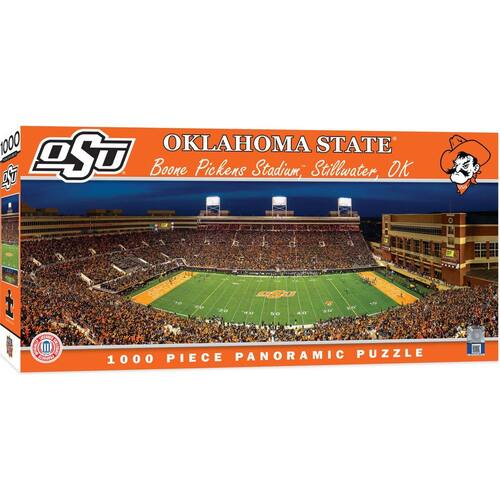 MasterPieces - Quebra-cabeça de 1000 peças, NCAA Oklahoma State Cowboys, vista panorâmica do estádio de futebol, diversão para adultos e família, 33 cm x 99 cm - Licenciado oficialmente: nossos quebra-cabeças panorâmicos NCAA são oficialmente licenciados pelas ligas em que seus times favoritos jogam; divertidos para dias de jogos e não autorização; Masterpieces é uma empresa americana de quebra-cabeças e jogos - FORMAS ÚNICAS: O quebra-cabeça possui 1.000 peças em uma variedade de cortes, garantindo um desafio; peças grossas interligadas seguram firmemente; acabamento fosco antirreflexo reduz o cansaço visual - Responsável pelo meio ambiente: nossos quebra-cabeças são feitos de material 100% reciclado e tintas à base de soja não tóxicas - Desafio: Nossos quebra-cabeças são projetados para serem divertidos e mentalmente estimulantes; ajudam no relaxamento; aumentam as habilidades de resolução de problemas; ótima atividade social com a família e amigos - Entretenimento para todos: a coleção MasterPieces oferece a maneira perfeita de manter a diversão noturna do jogo; selecione entre quebra-cabeças para adultos, idosos e crianças; baralhos exclusivos de baralho, jogos de tabuleiro, dominó, kits de artesanato e muito mais
