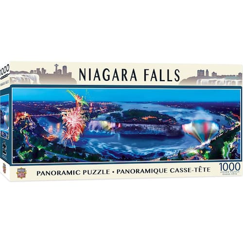 - Cataratas do Niágara: experimente a beleza deslumbrante da famosa cachoeira com este quebra-cabeça panorâmico; águas em cascata são capturadas em toda a sua grandeza; Masterpieces é uma empresa americana de quebra-cabeças e jogos