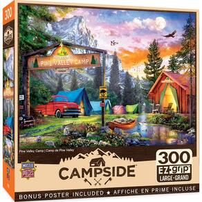 MasterPieces - Quebra-cabeça de 300 peças, formas grandes de aderência EZ, acampamento Pine Valley, diversão para adultos, idosos, família, crianças, acabamento sem brilho, 45,7 cm x 61 cm - PEÇAS EXTRA GRANDES: Nossos quebra-cabeças EZ Grip apresentam peças grandes e mais grossas para facilitar a coleta e manipulação; cuidadosamente trabalhados com crianças pequenas e idosos em mente; projetados para serem divertidos e mentalmente estimulantes; ajudam no relaxamento; aumentam as habilidades de resolução de problemas; ótima atividade social com a família e amigos - Formas exclusivas: o quebra-cabeça possui 300 peças em uma variedade de cortes, garantindo um desafio; peças entrelaçadas se encaixam para um ajuste seguro; acabamento fosco antirreflexo reduz o cansaço visual; um pôster vibrante e colorido está incluído para referência enquanto você o monta - Responsável pelo meio ambiente: nossos quebra-cabeças são feitos de material 100% reciclado e tintas à base de soja não tóxicas - Entretenimento para todos: a coleção MasterPieces oferece a maneira perfeita de manter a diversão noturna do jogo; selecione entre quebra-cabeças para adultos, idosos e crianças; baralhos exclusivos de baralho, jogos de tabuleiro, dominó, kits de artesanato e muito mais