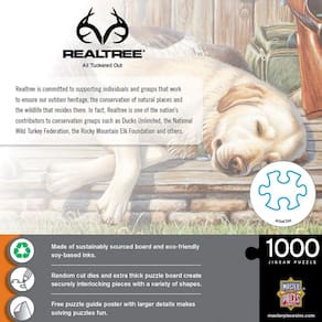 - Acabamento fosco – Nosso acabamento fosco ajuda a reduzir o brilho para uma melhor experiência de quebra-cabeça. Aqui está o que é apresentado nesta coleção Realtree – Cães de caça após um longo dia.