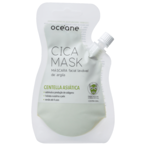 Máscara facial para todos os tipos de pele. Océane Cica Mask Centella Asiática estimula a produção de colágeno, hidrata e acalma a pele.