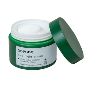 Creme facial noturno hidratante océane cica night cream contém em sua composição cica centella asiática, uma poderosa planta que acalma e auxilia na reparação da pele.Além de acalmar a pele, diminui a vermelhidão e ajuda a suavizar as manchas causadas por acnes. Ele hidrata, deixa a pele mais firme e suaviza linhas de expressão. Resultado: hidratante Sugestões de uso: 1.Faça a limpeza total da sua pele; 2.Aplicar uniformemente no rosto na parte da noite, você pode usar um pincel facial para aplicação; 3.Sempre utilize o protetor solar na sequência; 4.Em seguida, siga o passo a passo da sua rotina de skincare. Observações: imagem meramente ilustrativa Itens inclusos: 1 océane cica night cream creme facial noturno hidratante 50g