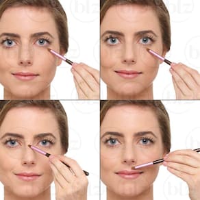 Pincel para aplicação de corretivo. Deposita o cosmético em pontos específicos do rosto a serem disfarçados, como espinhas, cicatrizes e manchas escuras, com acabamento perfeito.
