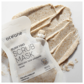 Máscara facial para todos os tipos de pele. Océane Revitalizing Scrub Mask revitaliza, clareia e proporciona frescor em poucos minutos.