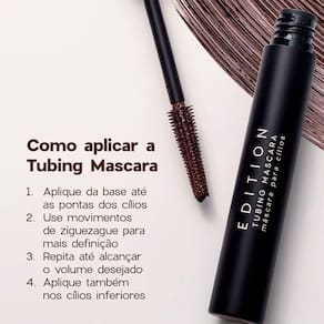 Aplique a máscara da base dos cílios até as pontas, usando movimentos de zigue-zague para distribuir o produto uniformemente. Para maior volume, aplique camadas adicionais após a primeira secar. Para remover, aplique água morna nos cílios e massageie suavemente com os dedos ou um algodão (de olhos fechados). O produto sairá em tubinhos, sem necessidade de esfregar. Evite puxar os fios para preservar sua integridade.
