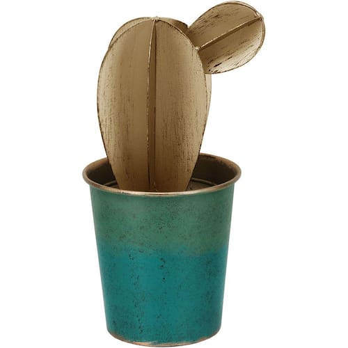 Lindo adorno em formato de cactus que remete sofisticação ao ambiente além de sere feito em metal, com acabamento diferenciado.
