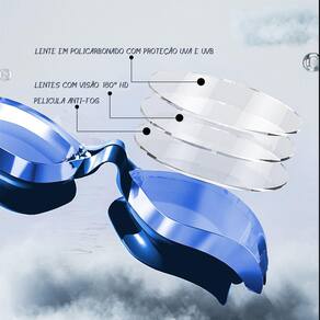 * 100% em Silicone de Ultima geração de alta qualidade. * É impermeável e anti-fog, perfeito para nadar. * Acessório muito necessário e útil para adultos para nadar. * Lentes de qualidade poli carbonato, 100% proteção UVA E UVB 400 com campo de visão 180° e high definicion.