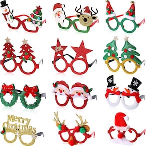 - Elementos de Natal: nossos óculos de Natal têm uma variedade de estilos, incluindo laços de Natal, chapéus de Papai Noel, bonecos de neve, árvores de Natal, chifres de alce e outros elementos natalinos, que são cheios de clima natalino e dão mais alegria à festa