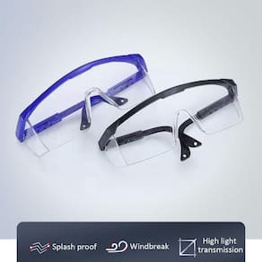 Características destacadas 1. A moldura macia em arco plano se encaixa perfeitamente no rosto 2. Lente: revestimento antiembaçante, evita efetivamente que a lente embaça 3. Lente de policarto, visão completamente clara. 4. Evite efetivamente respingos de líquidos e bloqueie 99% dos raios ultravioleta Material: TPU+PC Veja menos