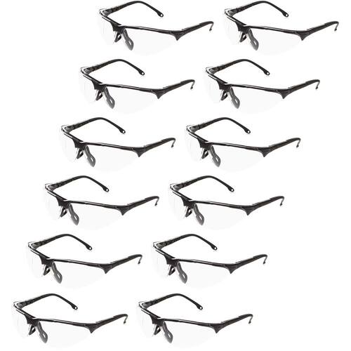 Amazon Basics Óculos de segurança antiembaçamento R200 com proteção ocular, lente transparente, 12 unidades, 16,8 x 15,5 x 4,4 cm - O pacote com 12 óculos de segurança oferece proteção ocular importante; projetado para homens e mulheres - Lentes transparentes feitas de policarbonato forte; ideal para uso em um campo de tiro interno ou ao caçar ao ar livre - O revestimento anti-embaciamento ajuda a evitar que as lentes fiquem embaçadas - especialmente útil em condições úmidas - A armação preta durável e leve oferece um ajuste confortável; aparência elegante e esportiva - Mede 15,5 x 14,5 x 4,5 cm (C x L x A)